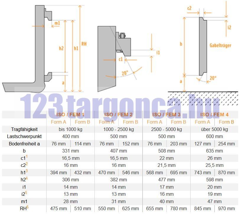 1500 kg/db teherbírású 1600 mm hosszú 100x45 mm keresztmetszetű targonca villa. Villakocsi mag: 407 mm Jelzése: FEM2A ISO2A DIN2A