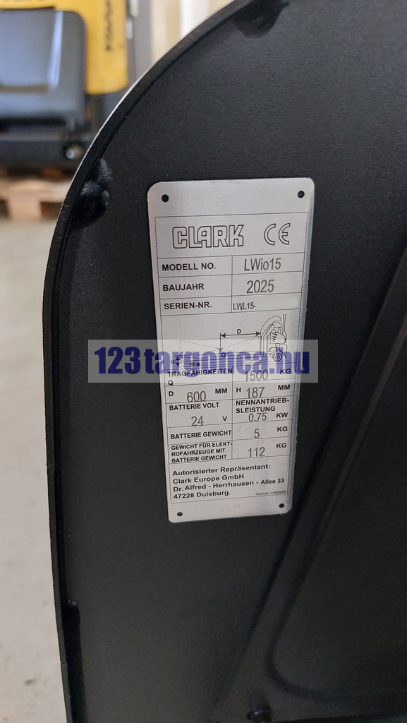Clark LWio15 LI-ION elektromos kézi raklapmozgató 1500 kg teherbírással Li-Ion akkumulátorral